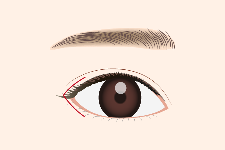 目尻(目の外側)の端を切開して目の横幅を外側に大きくする施術です。目尻を切開することで、目尻から下まぶたへのカーブが緩やかになるため、優しい印象の目元になり、白目の露出が増えるので、ぱっちりとした大きな目になれます。
