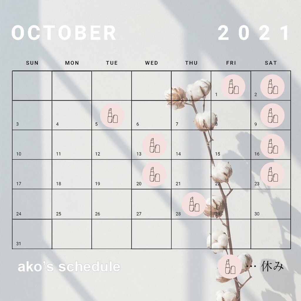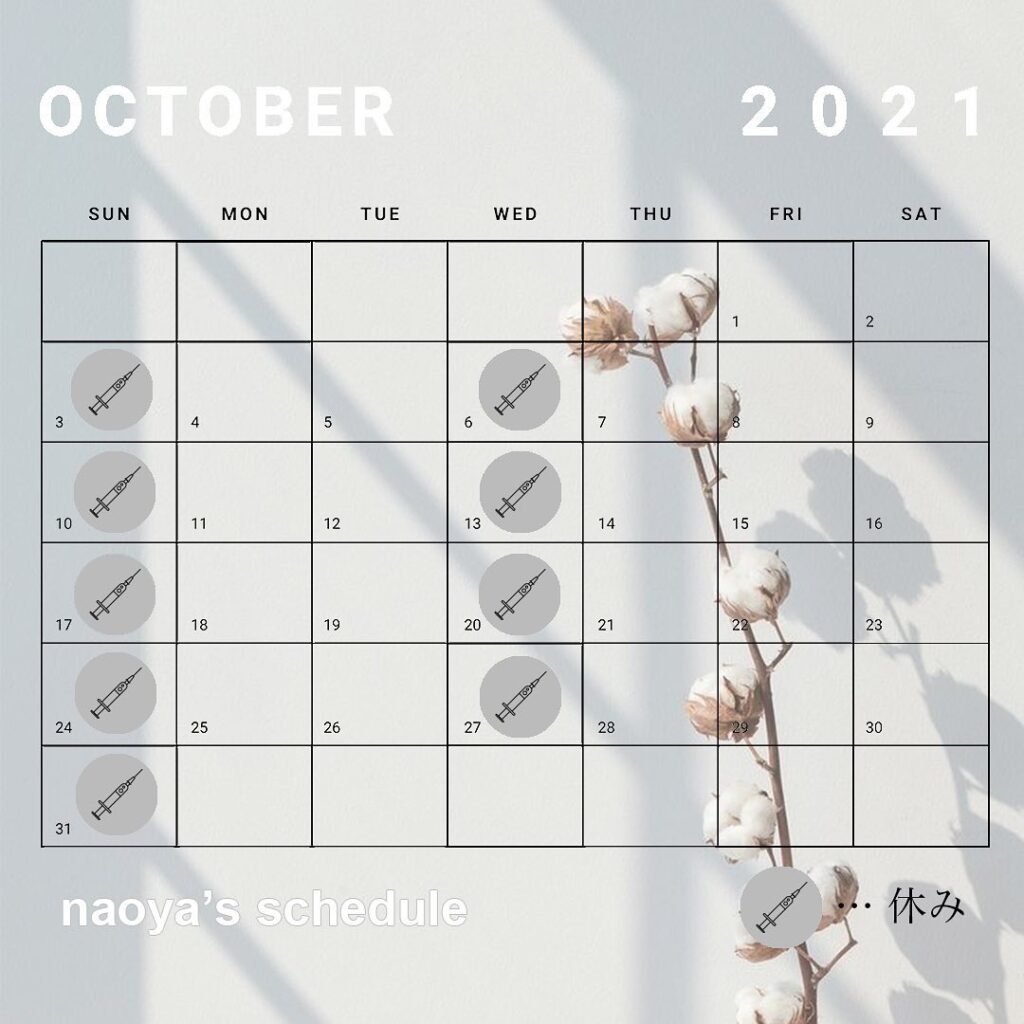 いつもANGIE(アンジークリニック)をご愛顧いただき誠にありがとうございます。10月はクリニック自体の休診日はございません。