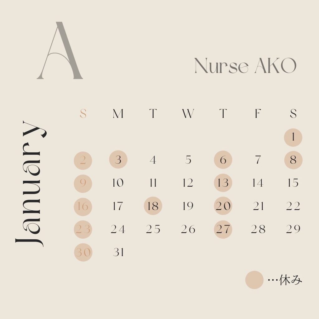 1月の名倉院長、ナースAKOの出勤スケジュールをお知らせ致します。