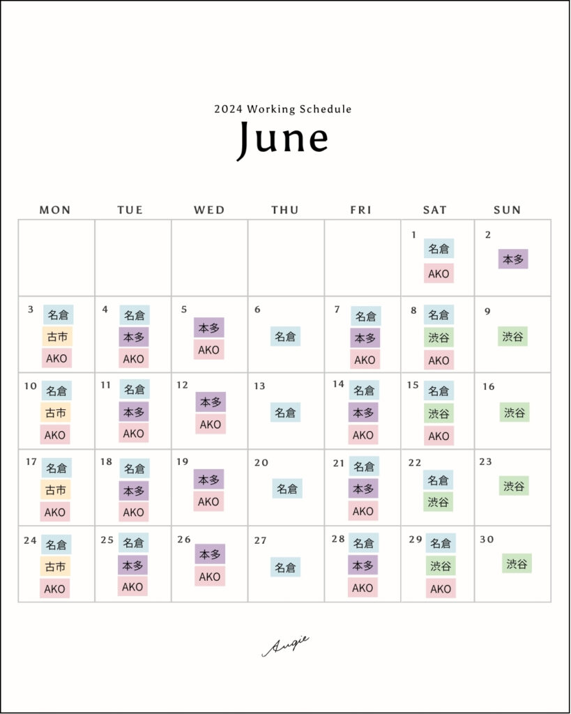名倉院長・本多医師・渋谷医師・古市医師・ナースAKOの出勤スケジュールをお知らせ致します。