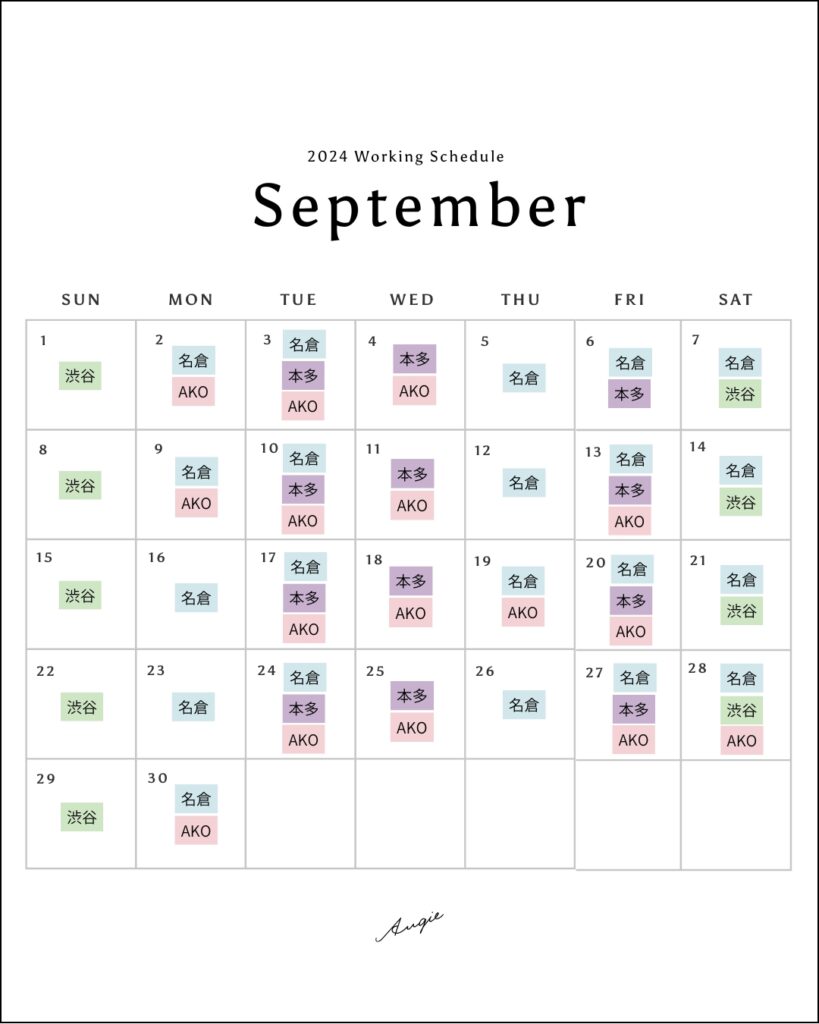 2024年9月出勤スケジュール ※変更あり